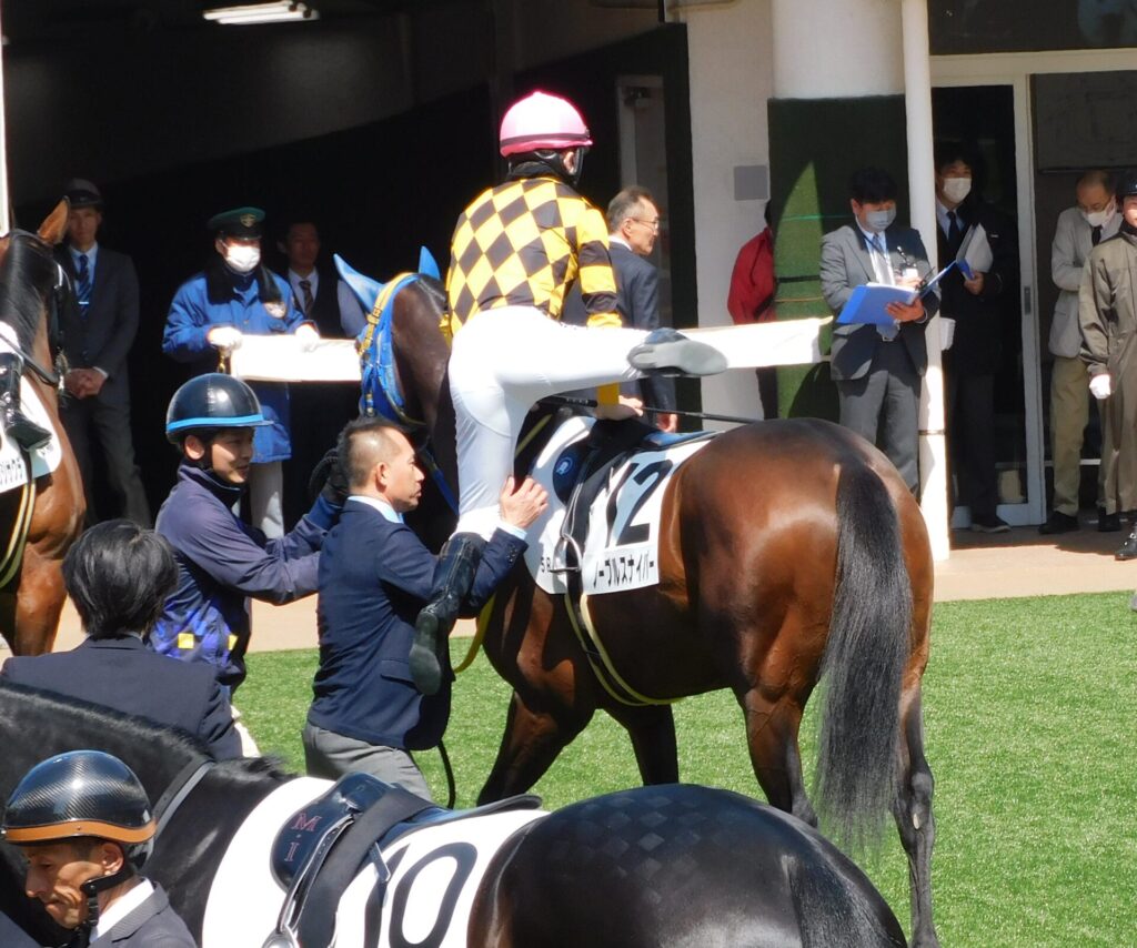 いつもの出資馬の応援のときと同じように昼休みに入ったくらいの時間からパドックの最前列で待機。5Rの発走時刻の30分前くらいになってもパドックに出走馬の姿が見えず、いつもより遅いな~何かトラブルが無ければ良いのだけど…